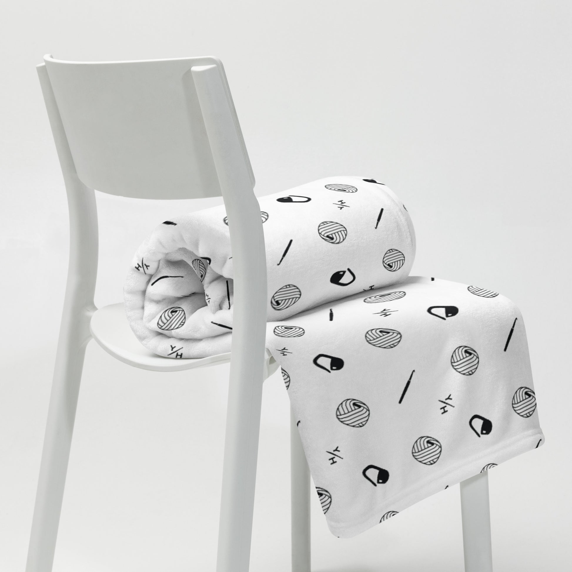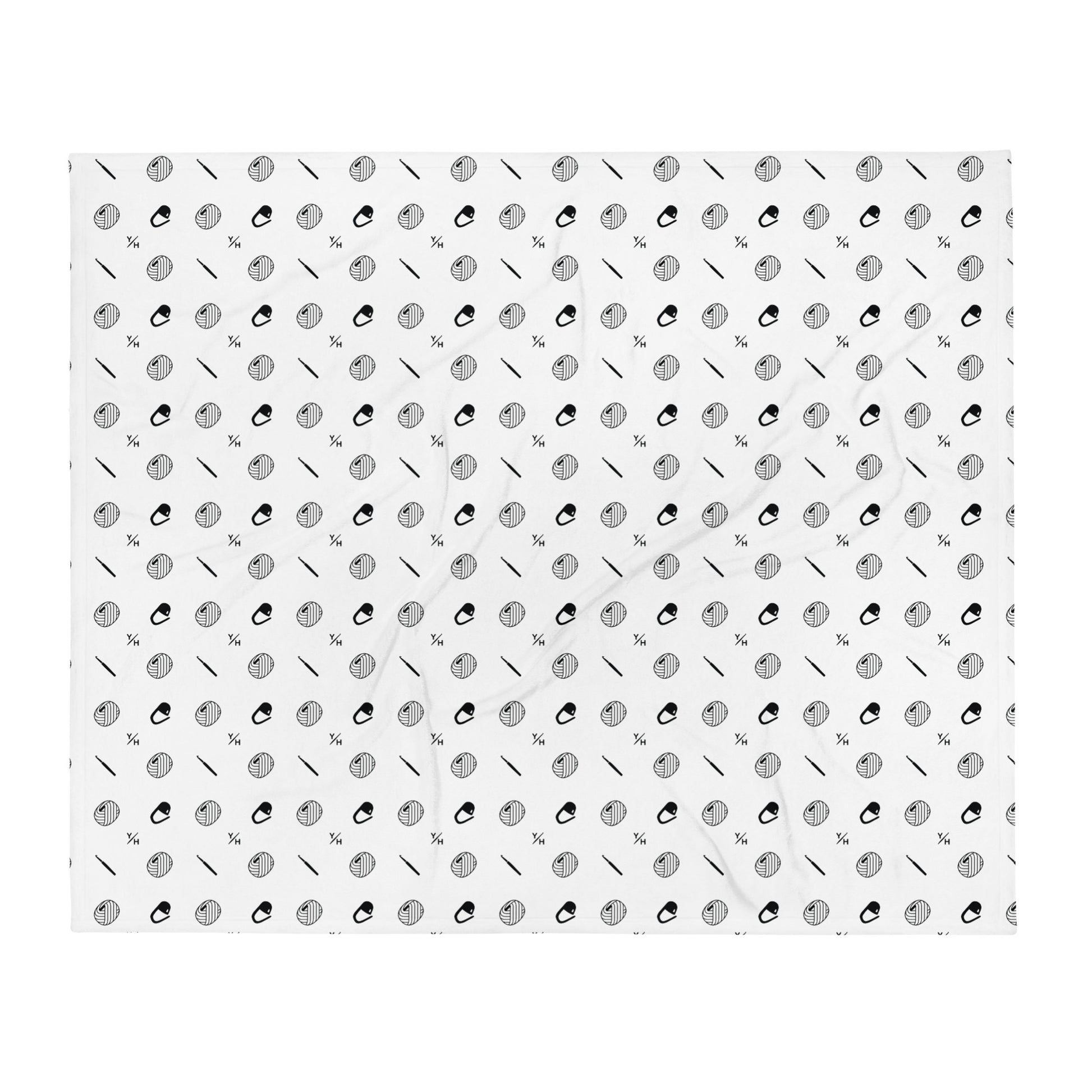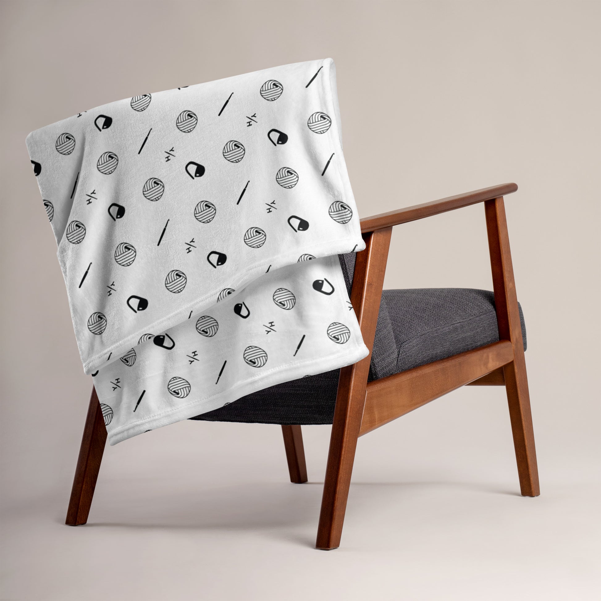 Printed with a bold black “Get Hooked” pattern on the front and finished with a soft white reverse, this cozy essential invites you to relax, stitch, or scroll through your favorite patterns in serious comfort.