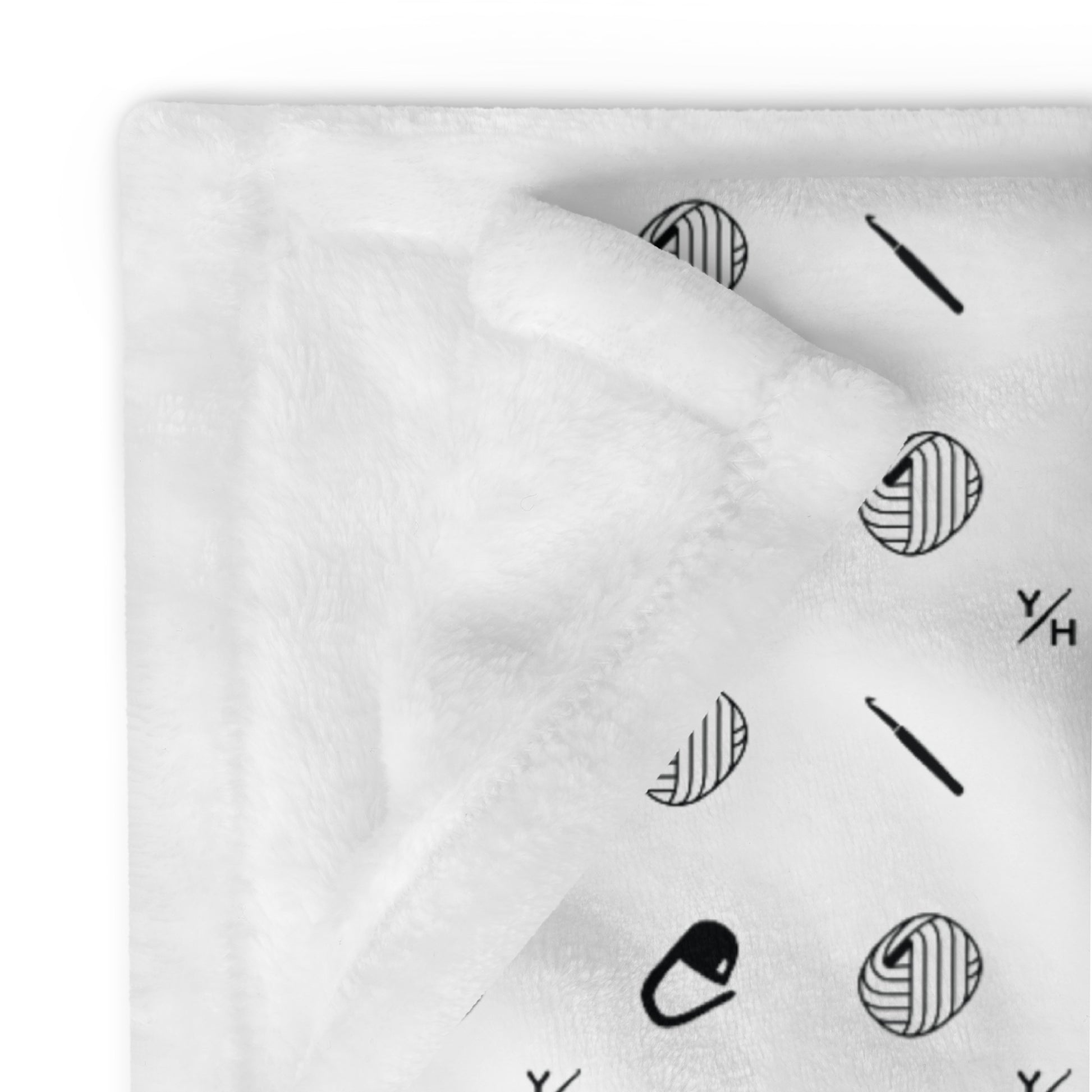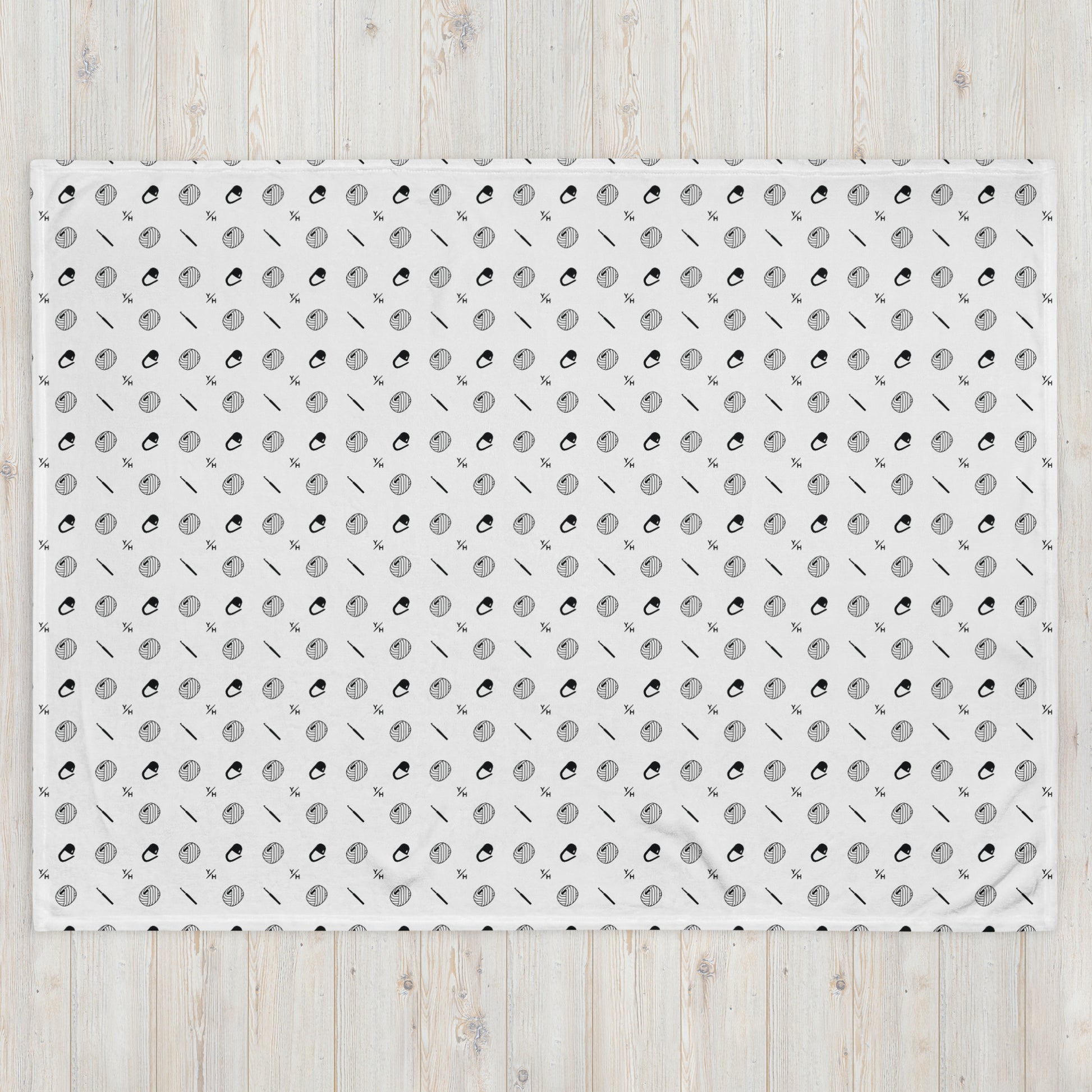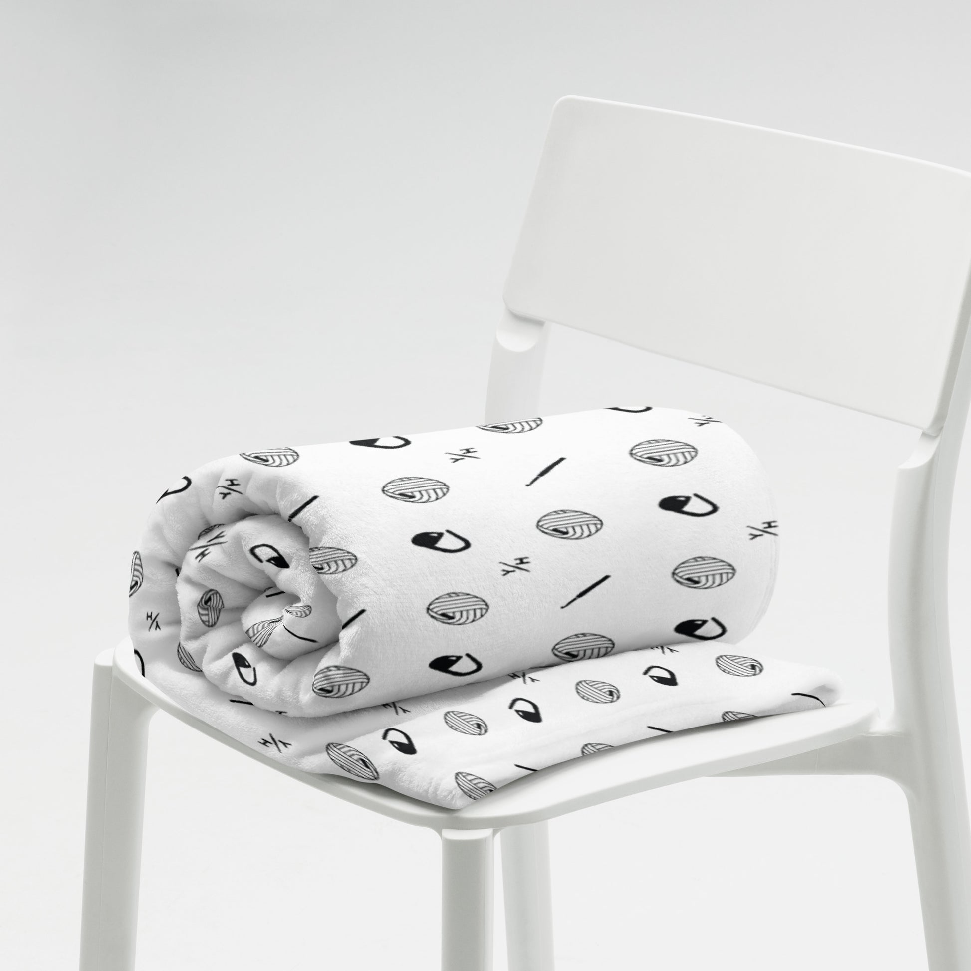 Printed with a bold black “Get Hooked” pattern on the front and finished with a soft white reverse, this cozy essential invites you to relax, stitch, or scroll through your favorite patterns in serious comfort.