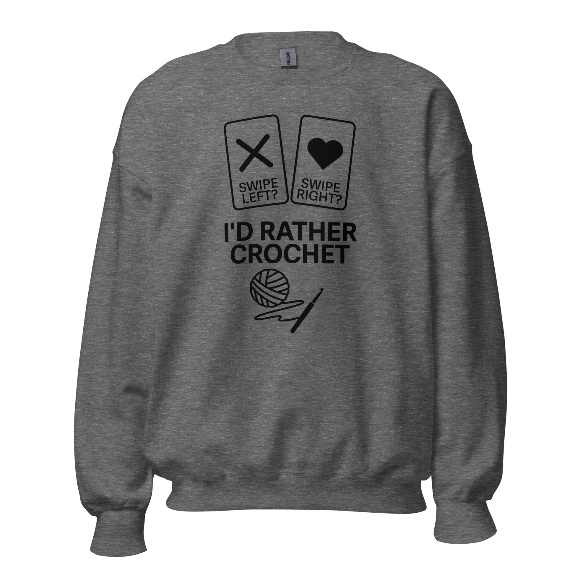 “Swipe Left? Swipe Right? I’d Rather Crochet” Crewneck Sweatshirt